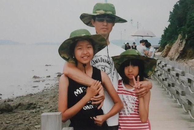 Kim Young-oh as a younger father with his first daughter, Kim Yu-min, on left and Yu-na on right. Nearly a year later, Kim said he and other families are still seeking answers from the South Korean government regarding the capsized ferry Sewol. Photo courtesy of Kim Young-oh